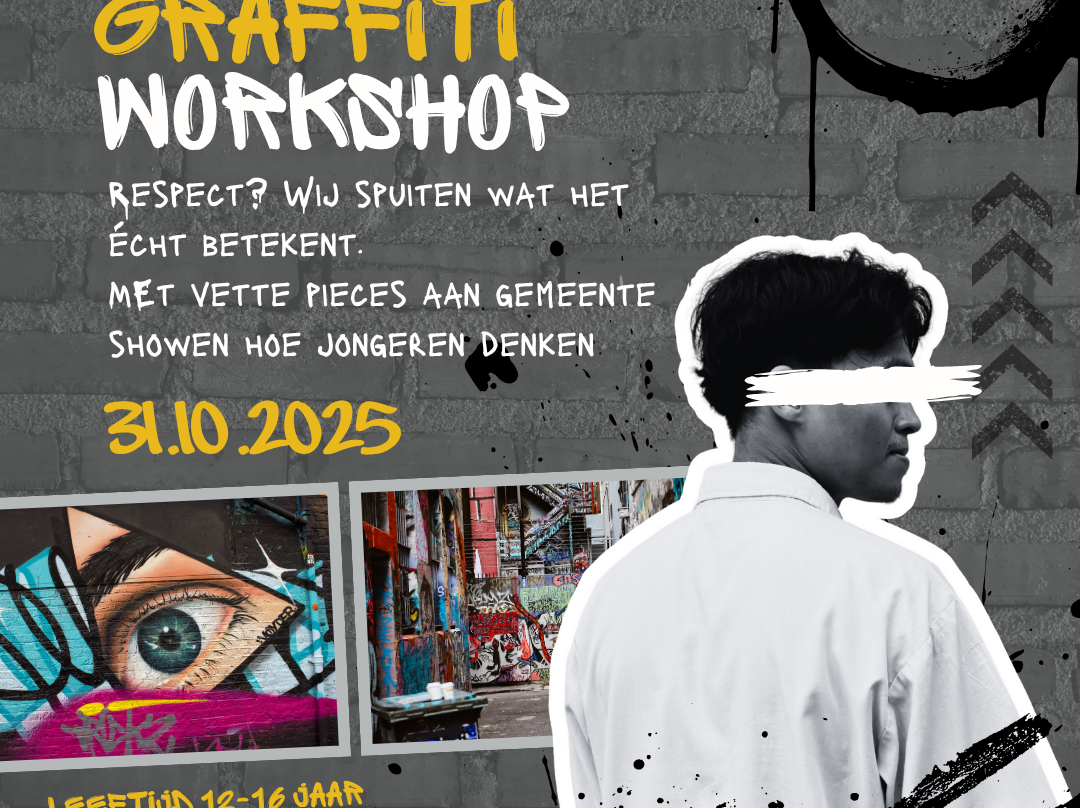 Op vrijdag 31 oktober organiseren we een toffe graffitiworkshop voor jongeren van 12 t/m 16 jaar